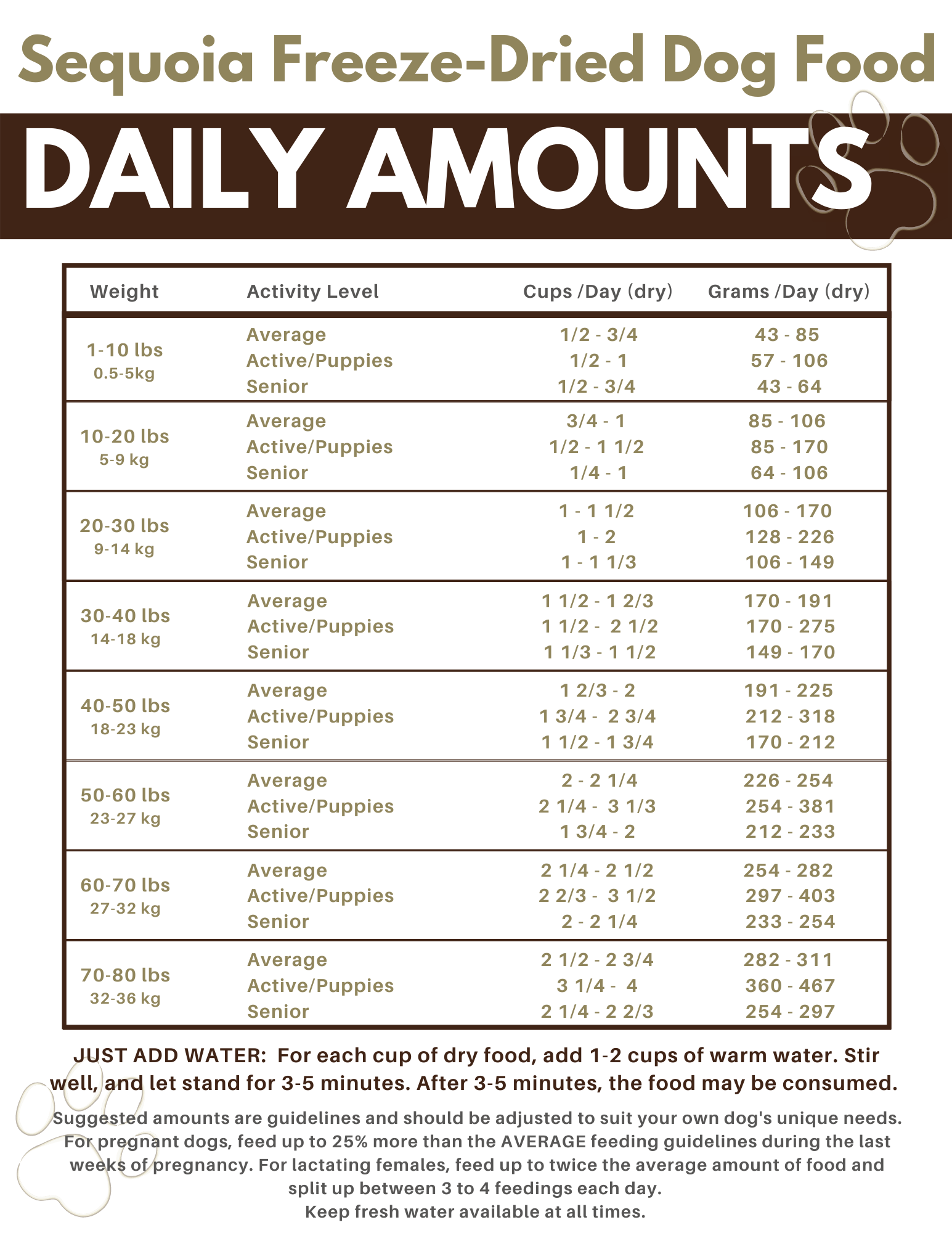 Most pets transition from their current food to Sequoia Freeze-Dried within 7 - 10 days. We believe that the slower the better when it comes to transitioning your pet as it always yields the most favorable results. Starting with small amounts of Sequoia Freeze-Dried initially and gradually increasing the amount over time.
